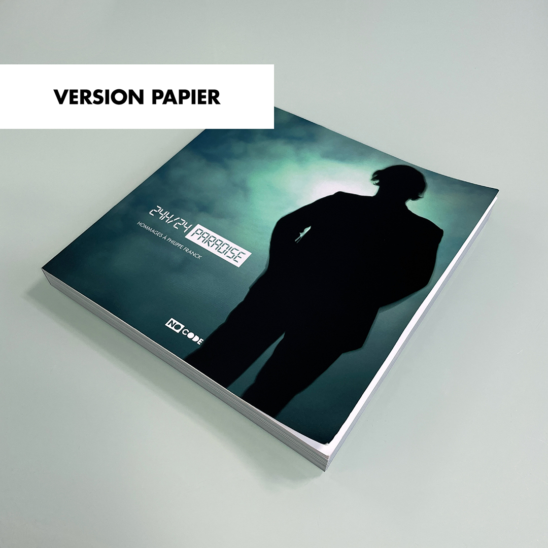 Sur une proposition de Rudy Rigoudy et des éditions No code, 24H/24 Paradise – Hommages à Philippe Franck devait être le catalogue de cet événement, mais il est devenu un monument hybride dans lequel les témoignages d’une quarantaine d’artistes, commissaires d’exposition, critiques, enseignant·es chercheur·es, offrent de multiples regards sur les Good vibes de ce personnage solaire.
